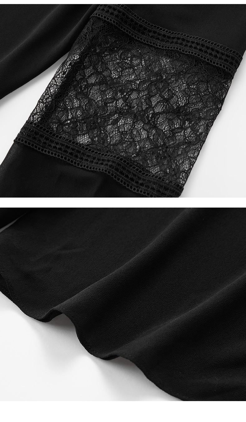 贅沢なスパンコール刺繍が胸元を彩る黒ブラウス。エレガントなデザインは、特別なシーンにもぴったり。柔らかなレース素材が女性らしさを引き立て、どんなスタイルにもマッチ。デイリーユースからフォーマルまで幅広く活躍する一枚。洗練された印象を与えるこのレースブラウスで、個性的なコーディネートを楽しんで。